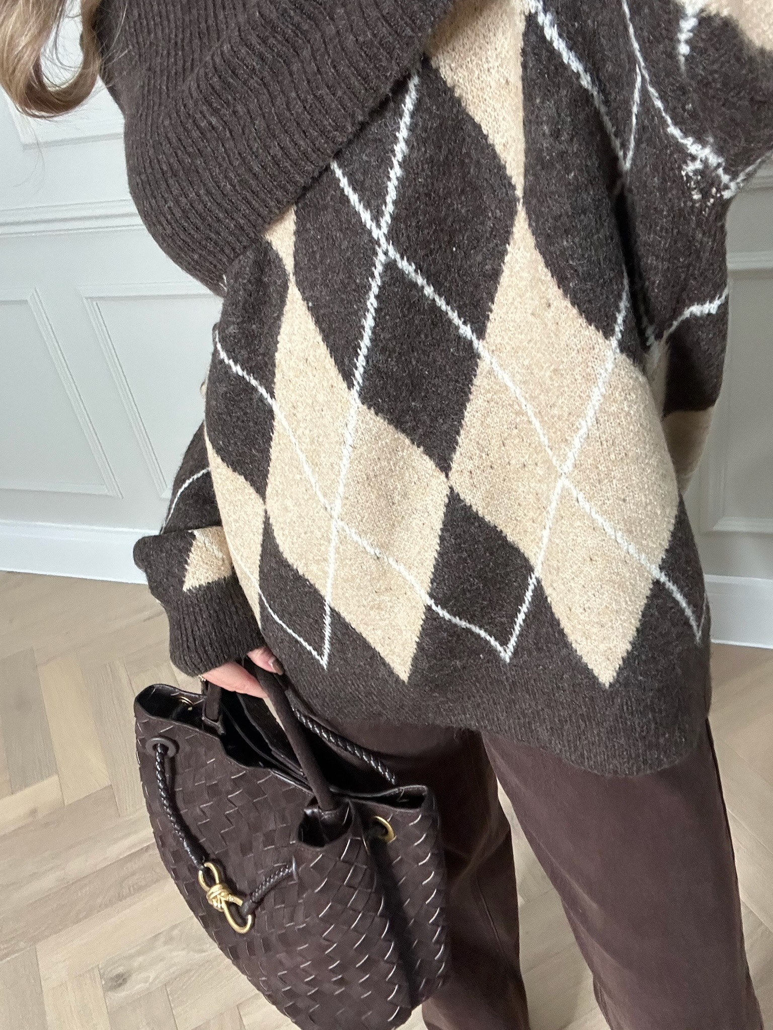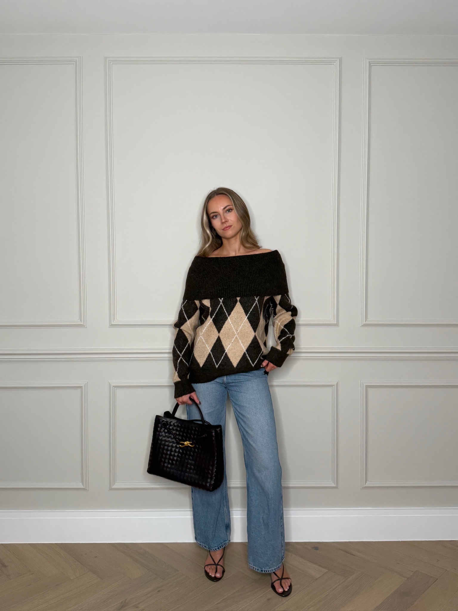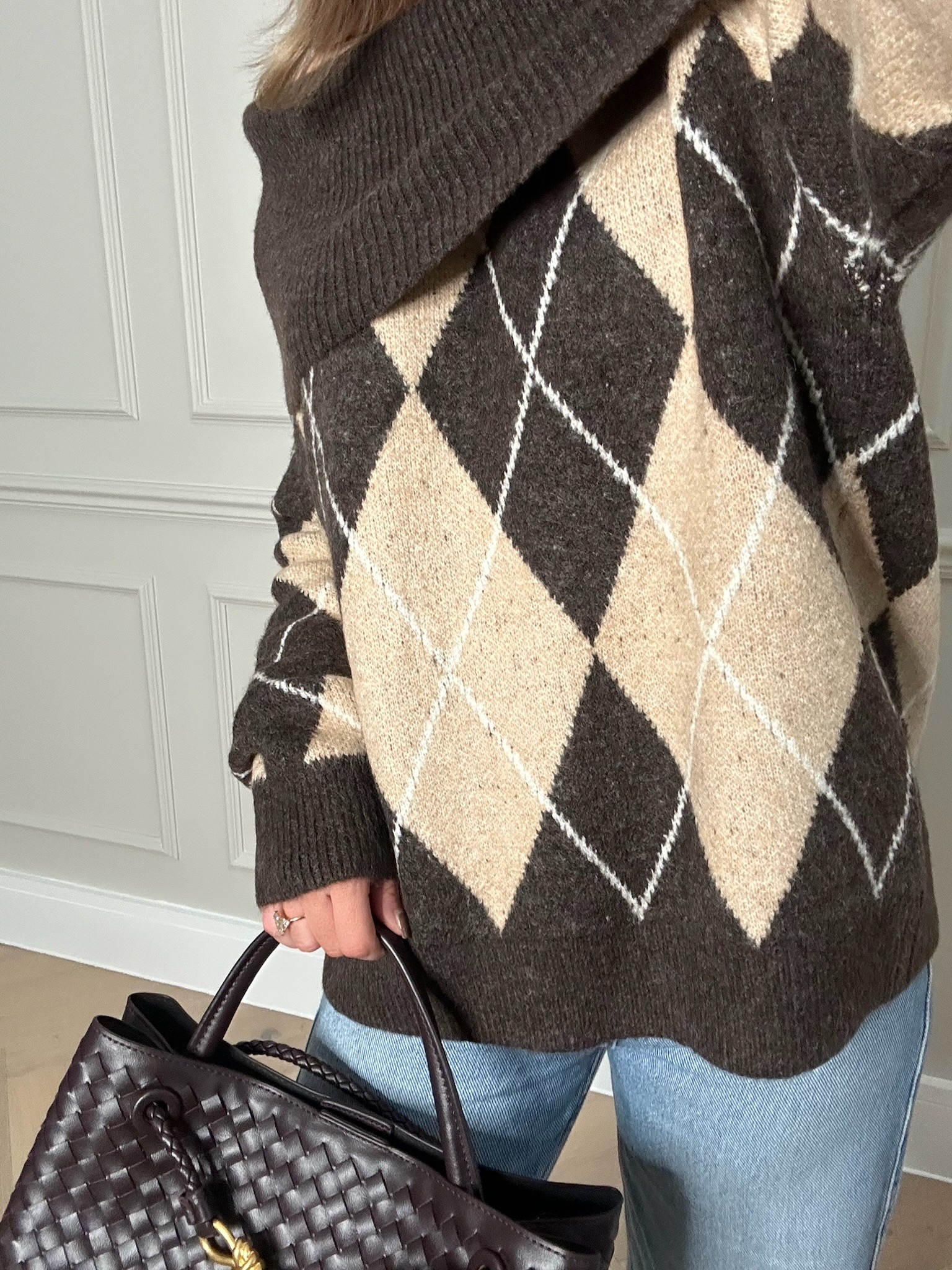 Ava Argyle Pattern Off Shoulder Jumper – Brown
