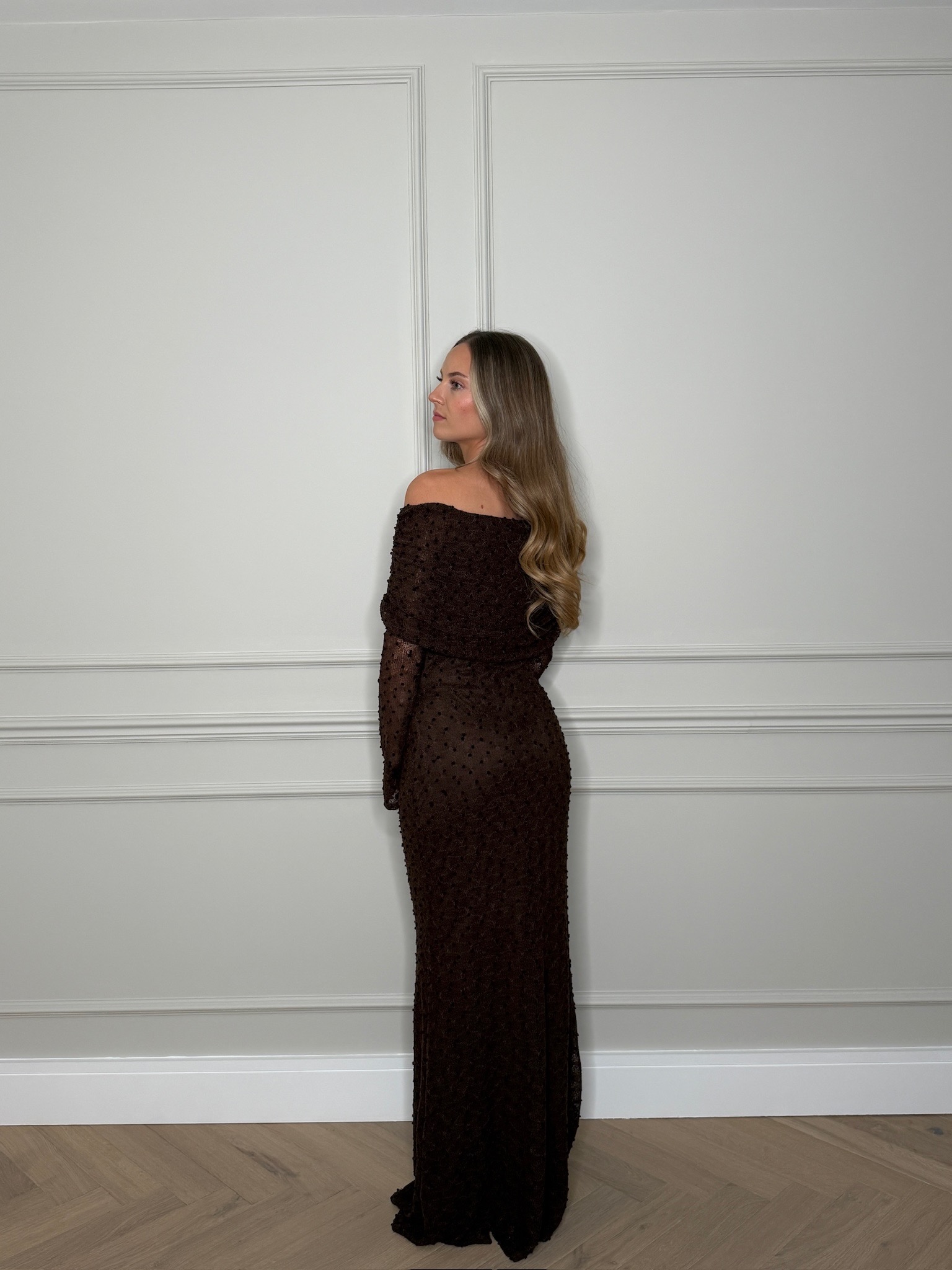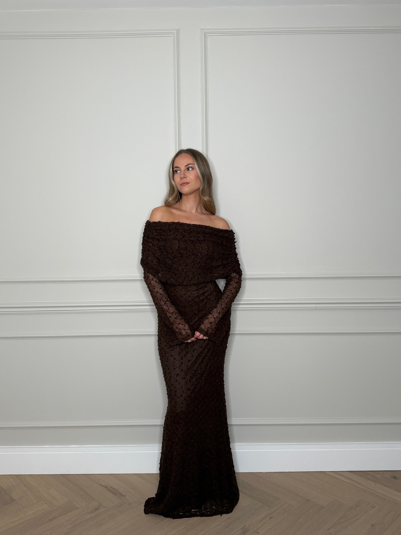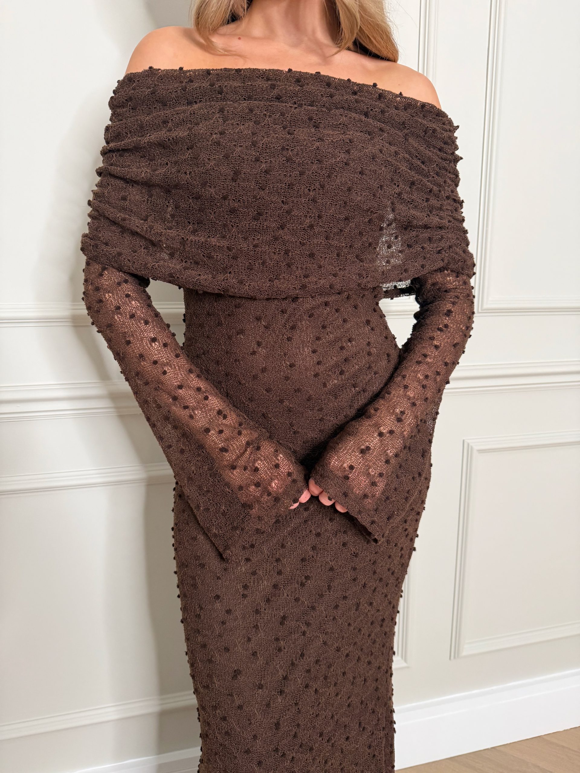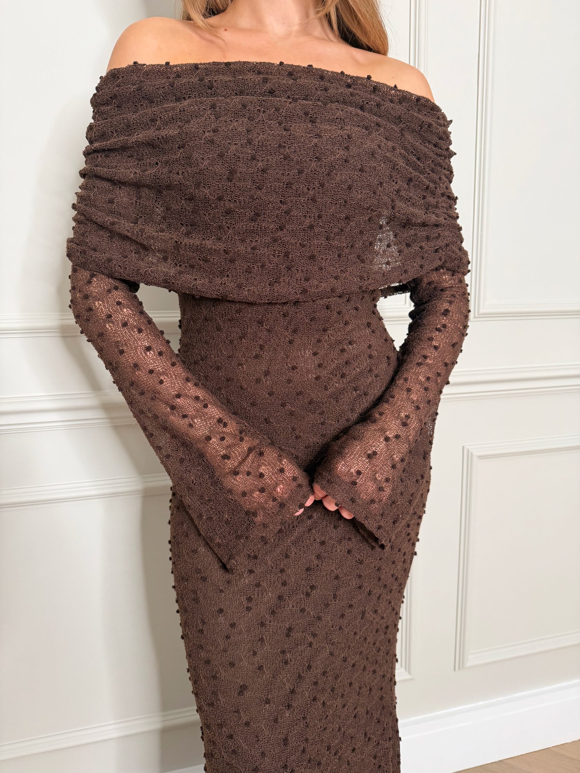 - Bardot style with material overlap