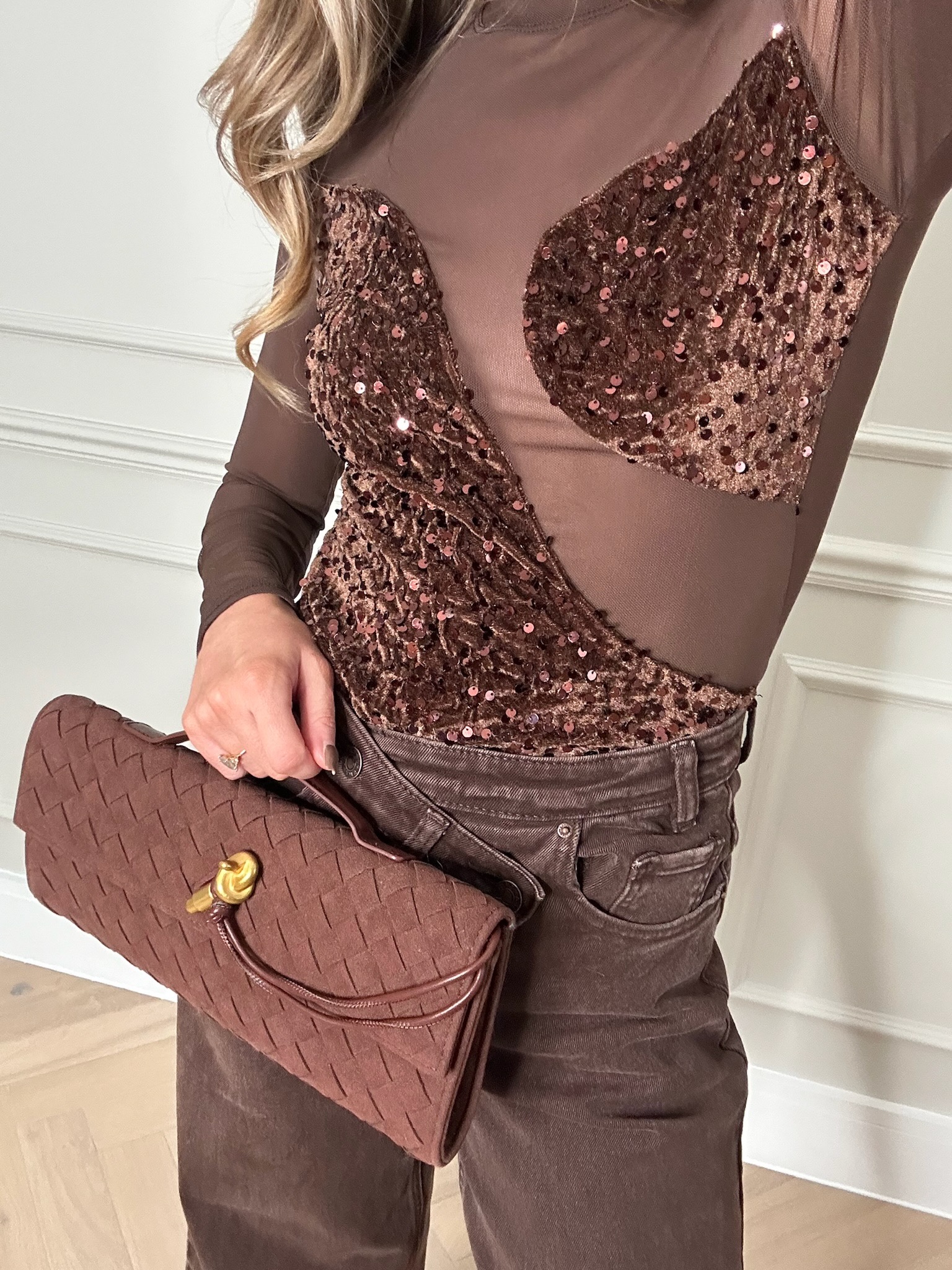 A new Sequin piece in our Sadie Bodysuit in Brown. Loved Daisy but missed out...then you will love Sadie. A little more glam but still looks gorge with Jeans.