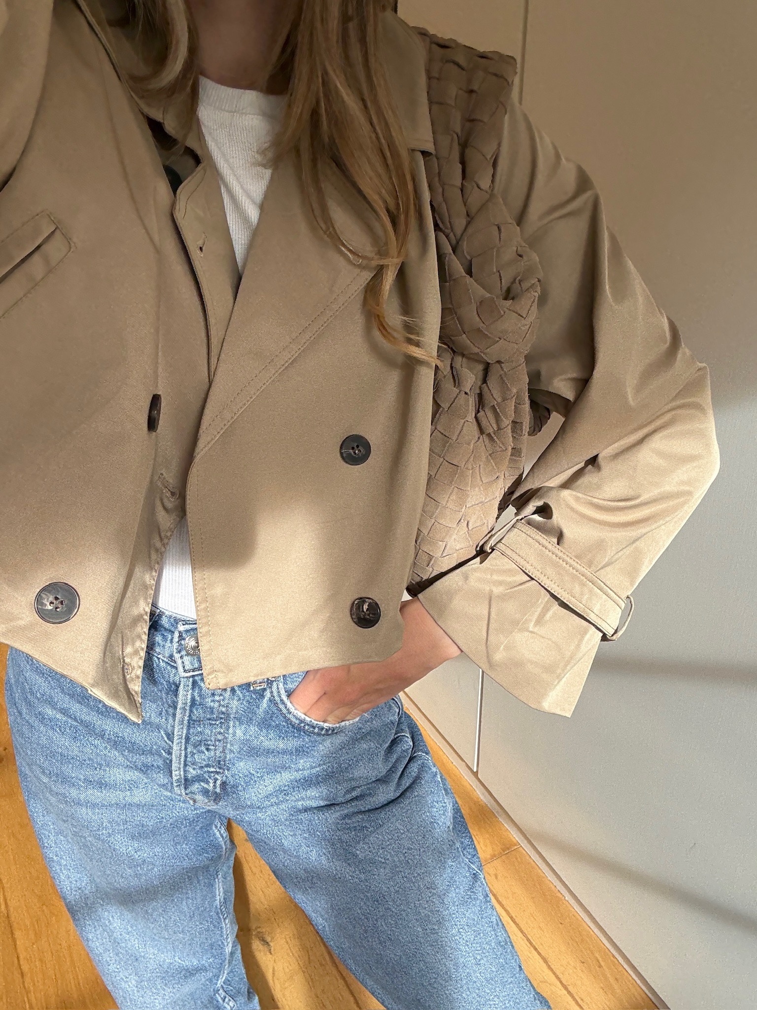 Sloane Short Boxy Trench Coat Jacket – Stone